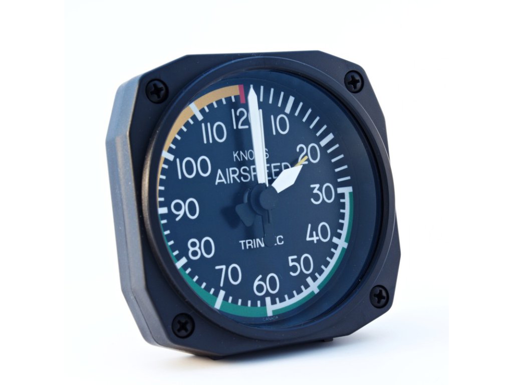 Kvalitní stolní hodiny s budíkem od kanadského výrobce Trintec je přesnou replikou leteckého přístroje - rychloměru (Airspeed Indicator).