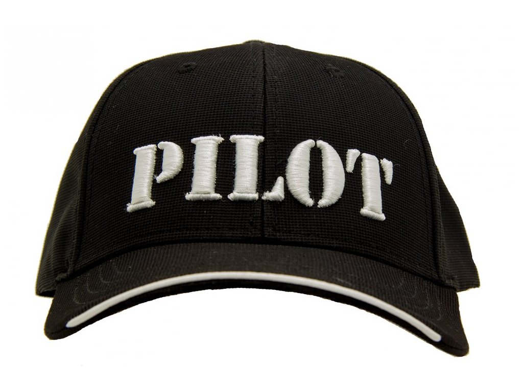 Kvalitní kšiltová čepice v elegantní černé barvě s vyšitým nápisem PILOT.